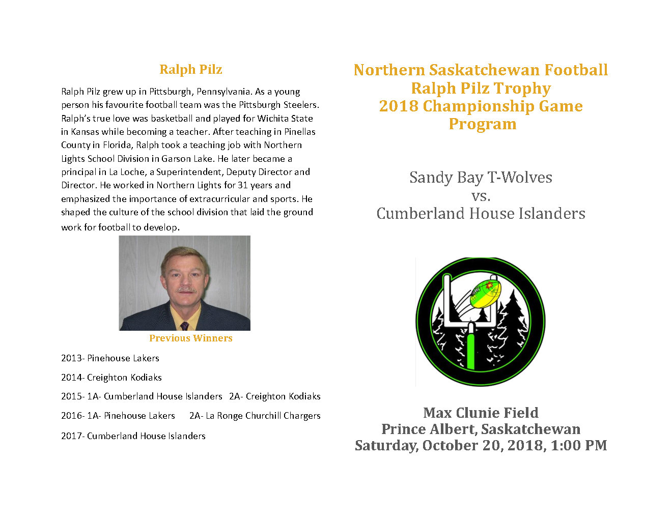 2018 Championship Game – Sandy Bay 14 vs. Cumberland House 44- Max Clunie Field, Prince Albert